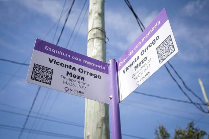 La intendenta de Quilmes, Mayra Mendoza, encabezó este viernes un nuevo acto de señalización del programa “Esquinas con Memoria”, en la intersección de la calle 172 y Los Andes, en el barrio IAPI, de Bernal Oeste, donde se rindió homenaje a Vicenta Orrego Meza, quilmeña asesinada durante la última dictadura cívico-militar.