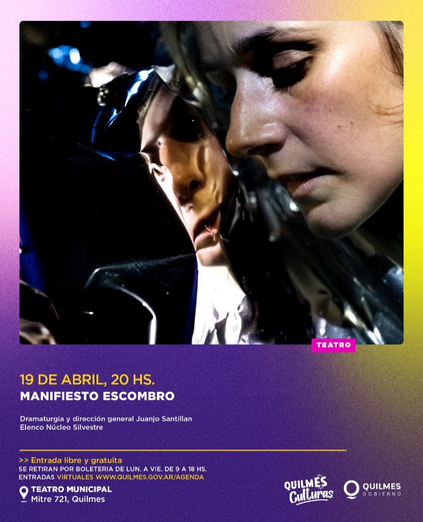 Finalmente, el sábado 19 de abril a las 20, se presentará “Manifiesto Escombro”, una obra escrita y dirigida por Juanjo Santillán, interpretada por Sofía Drever y producida por el colectivo Núcleo Silvestre.