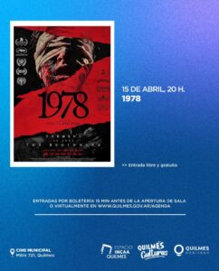 El martes 15 de abril a las 20, se proyectará “1978”. El film se sitúa durante la final del Mundial entre Argentina y Holanda, en plena dictadura militar. Un grupo de torturadores secuestra por error a un grupo de jóvenes, y lo que comienza como un interrogatorio se convierte en un verdadero infierno. Una historia cruda que interpela desde la memoria.