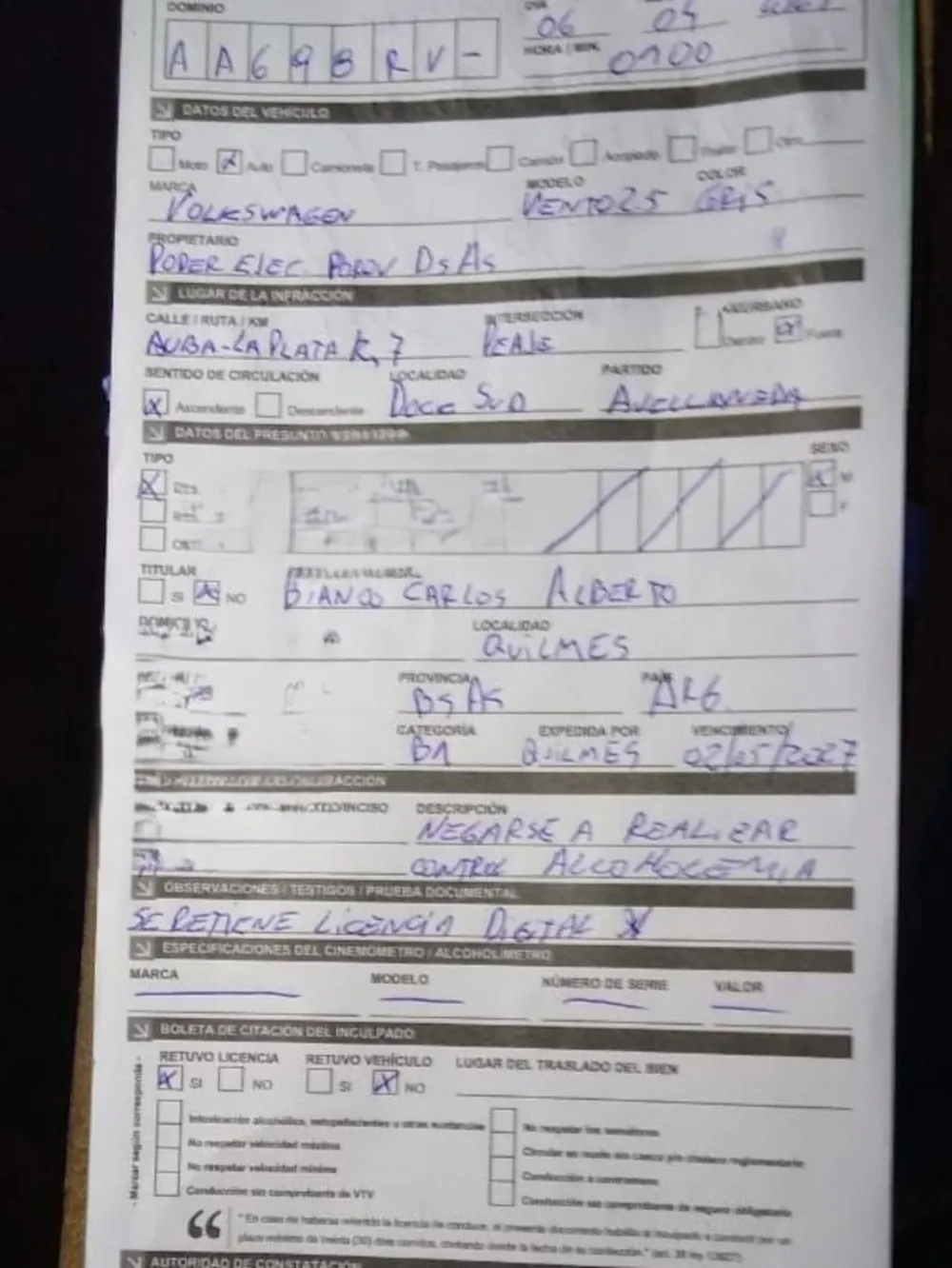 En lugar de hacerse el test, el funcionario optó por firmar el acta correspondiente. Bajo la normativa de la provincia de Buenos Aires, la negativa al control es considerada “presunto positivo”, por lo que se le retuvo la licencia de conducir digital. El vehículo no fue secuestrado, pero el hecho reviste gravedad: rige la Ley de Alcohol Cero en territorio bonaerense, lo que convierte cualquier infracción de este tipo en un tema sensible tanto desde lo legal como desde lo político.